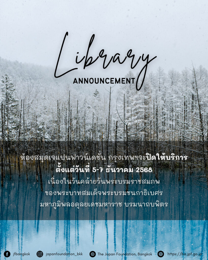 Please kindly be informed that The Japan Foundation, Bangkok library will close as follows: