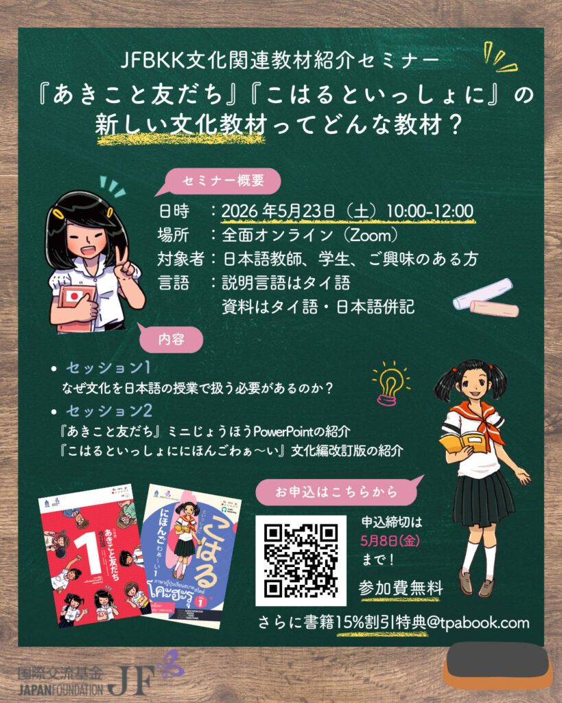 国際交流基金バンコク日本文化センター(JFBKK)は以下の通り、セミナーを開催します。