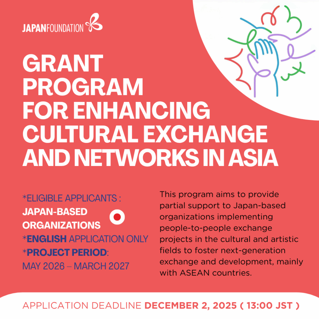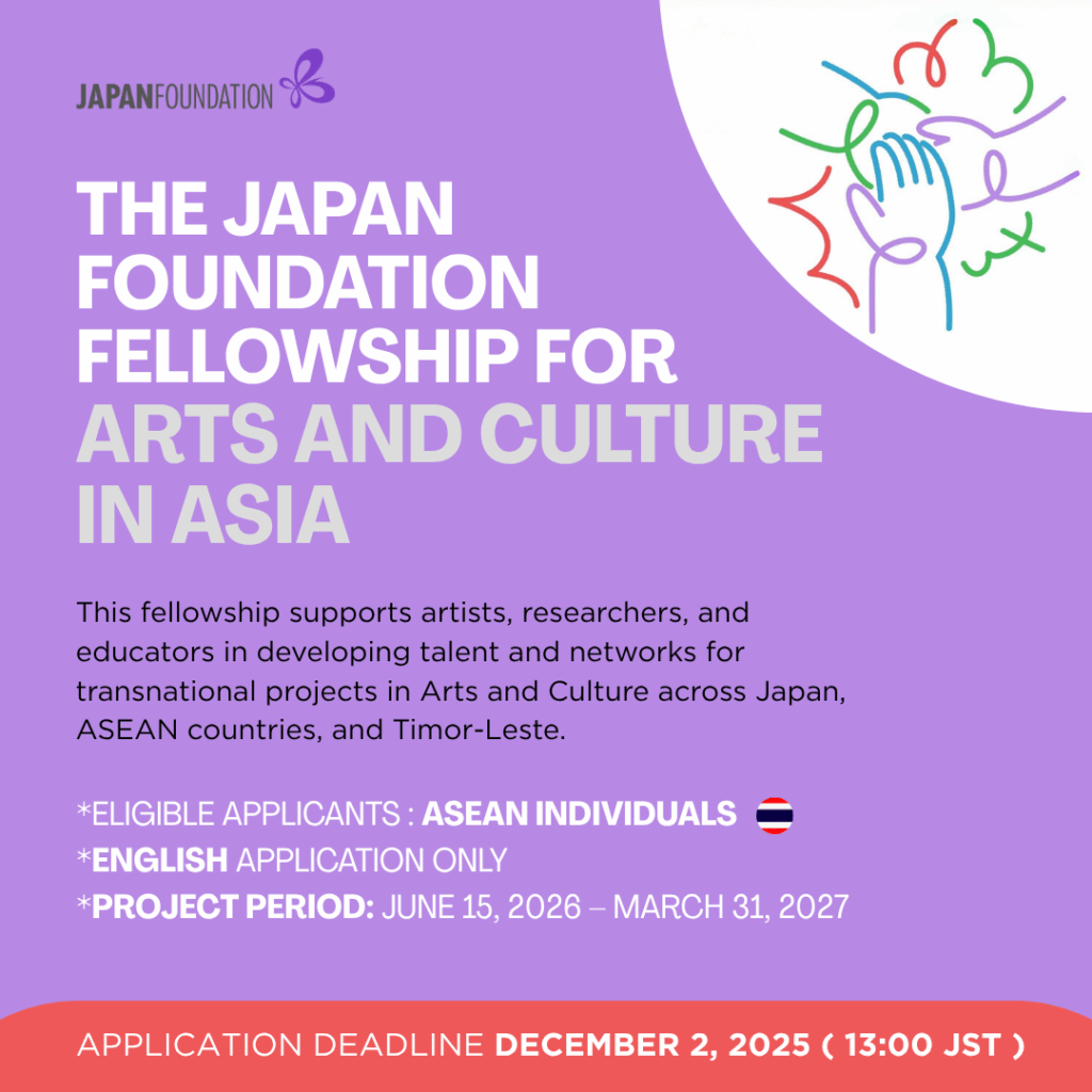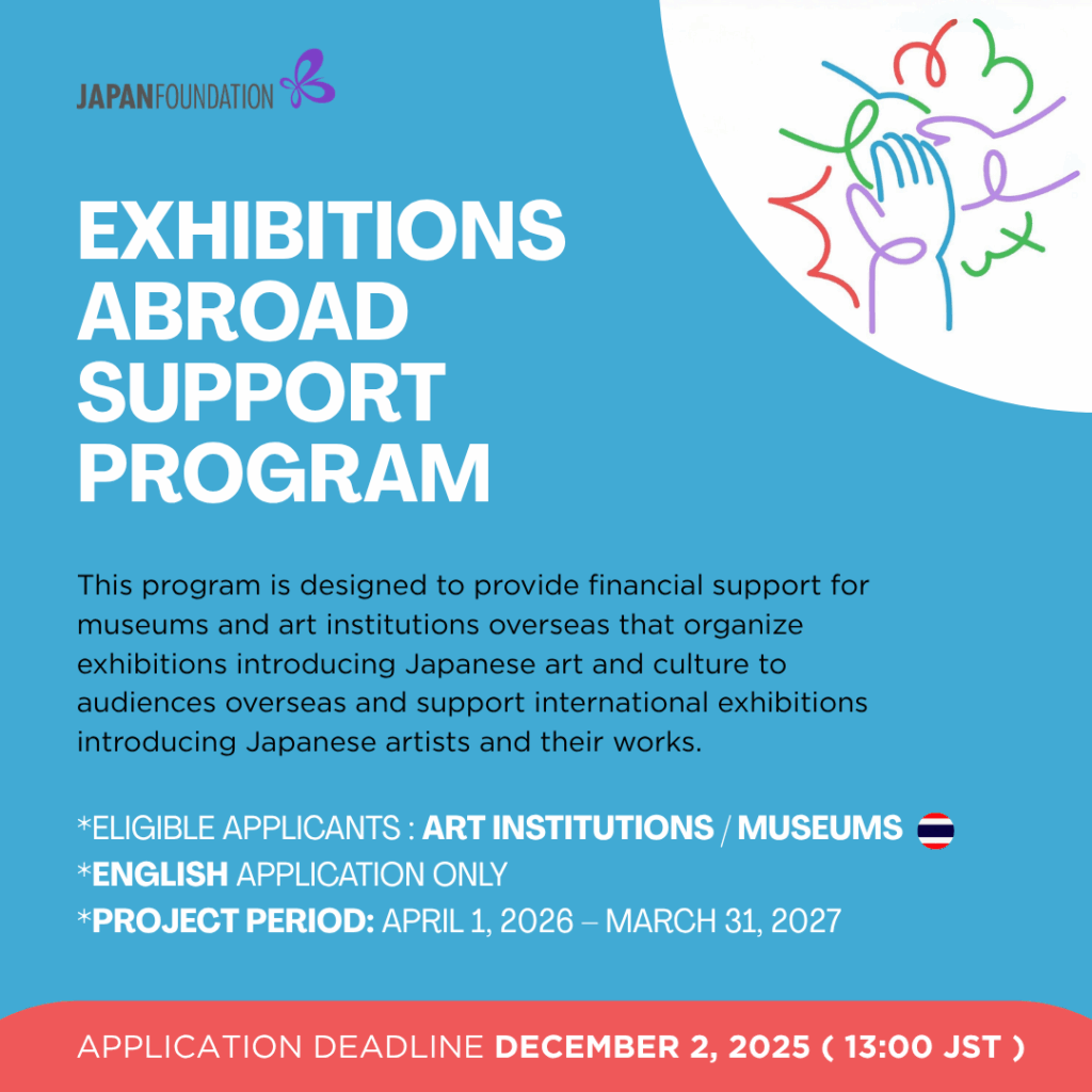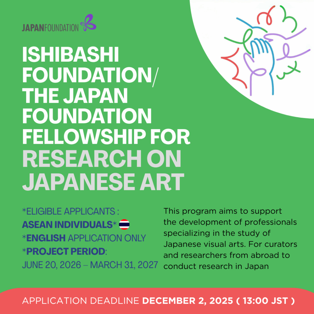 โอกาสทุนให้เปล่าสำหรับทุนวิจัยและพัฒนาวิชาชีพ นิทรรศการ การแลกเปลี่ยนและการสร้างเครือข่ายทางด้านศิลปะและวัฒนธรรมญี่ปุ่น