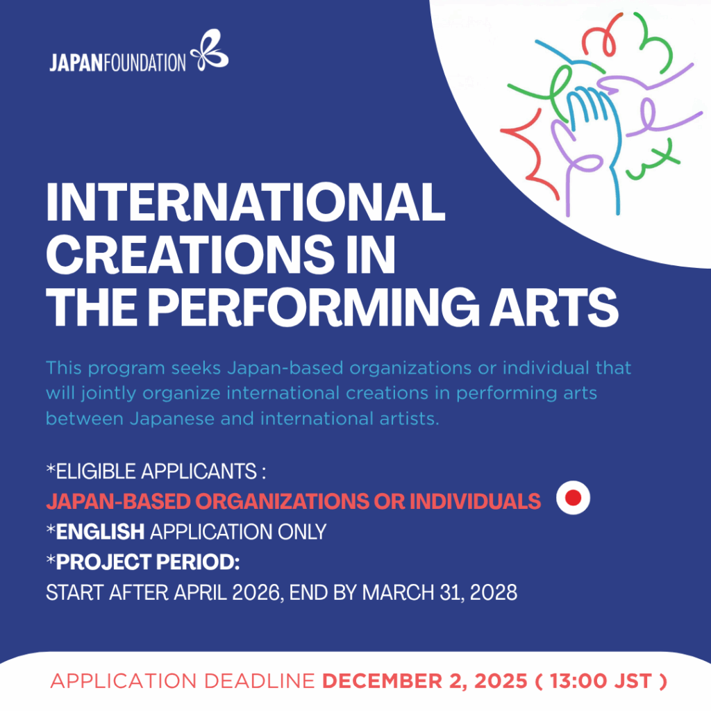 เจแปนฟาวน์เดชั่นแสวงหาองค์กรที่ร่วมสร้างสรรค์งานระดับระหว่างประเทศด้านศิลปะการแสดงระหว่างศิลปินญี่ปุ่นและศิลปินต่างชาติ